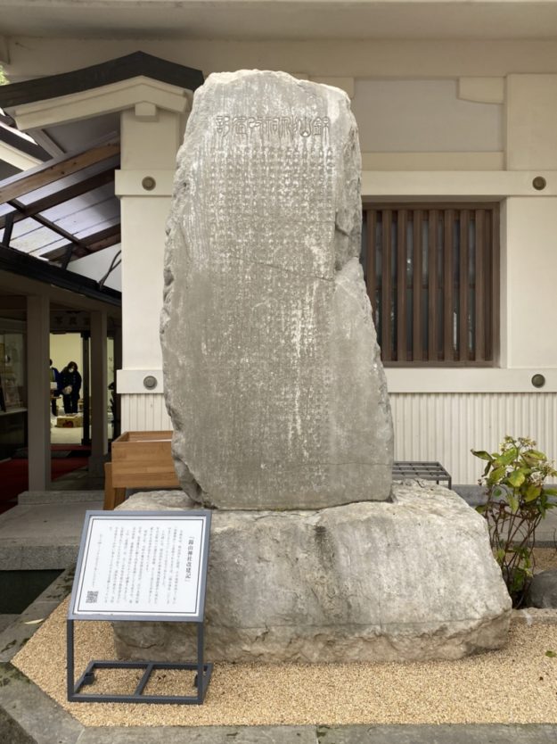 明治八年、当時の権令安岡良亮氏が、江戸末期の儒学者、安井衡氏に頼り内容を漢碑として大成させ、幕末の書家 成瀬温氏の書法によって研鑽されました。 令和2年8月、移設工事をさせていただきました。